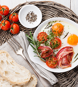 Serrano ham, spinach, roasted red peppers, tomato, pil pil sauce